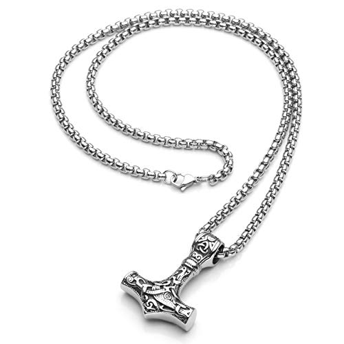 Zysta Uomo Collana Mjolnir Martello di Thor in Acciaio Inox Argento Nero Collana Norse Viking Uomini-Argento