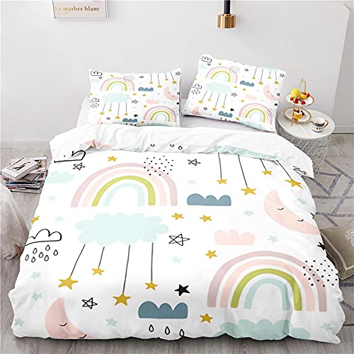 ZZASW Arcobaleno Set Di Biancheria Da Letto Copripiumino 155X220 Cm Copripiumino Bambino Con Cerniera Stampa Digitale 3D Microfibra + 2 Federe 50X75 Cm