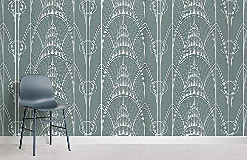 ZZIAO Carta da parati Art Deco Chrysler modello architettonico verde fotomurali poster murale Soggiorno camera letto minimalista tv sfondo-300cm×210cm