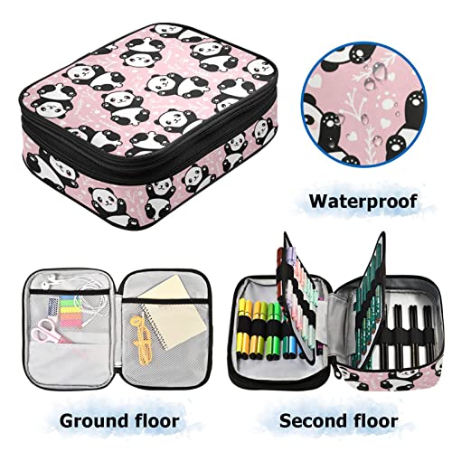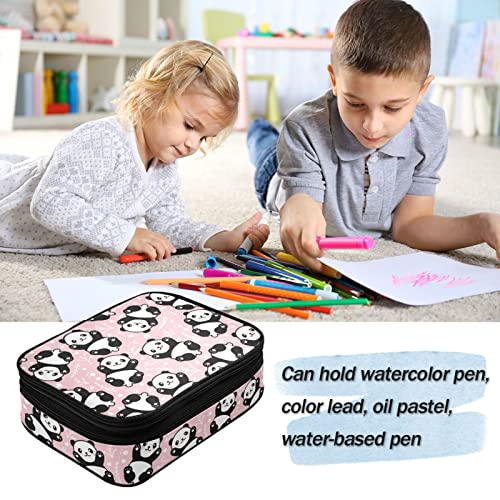 ZZKKO Astuccio colorato carino cartone animato Panda rosa 96 slot portapenne con cerniera grande capacità astuccio organizzatore per penne acquerello pennarelli, Panda Rosa, alla moda
