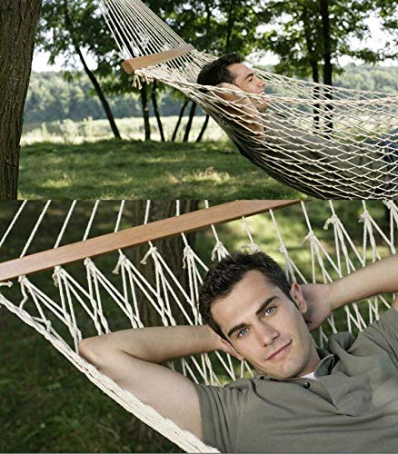 ZZSIccc Amaca A Rete Doppia Corda, Rinforzo In Corda Di Cotone Con Amaca In Legno Con Doppia Apertura Esterna, Bianco 190 * 90 Cm