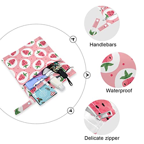 ZZXXB Rosa Fragola Impermeabile Wet Bag Riutilizzabile Panno Pannolino Wet Dry Bag con Cerniera Tasca per Viaggi Spiaggia Piscina Palestra Yoga Costume da bagno Toiletries